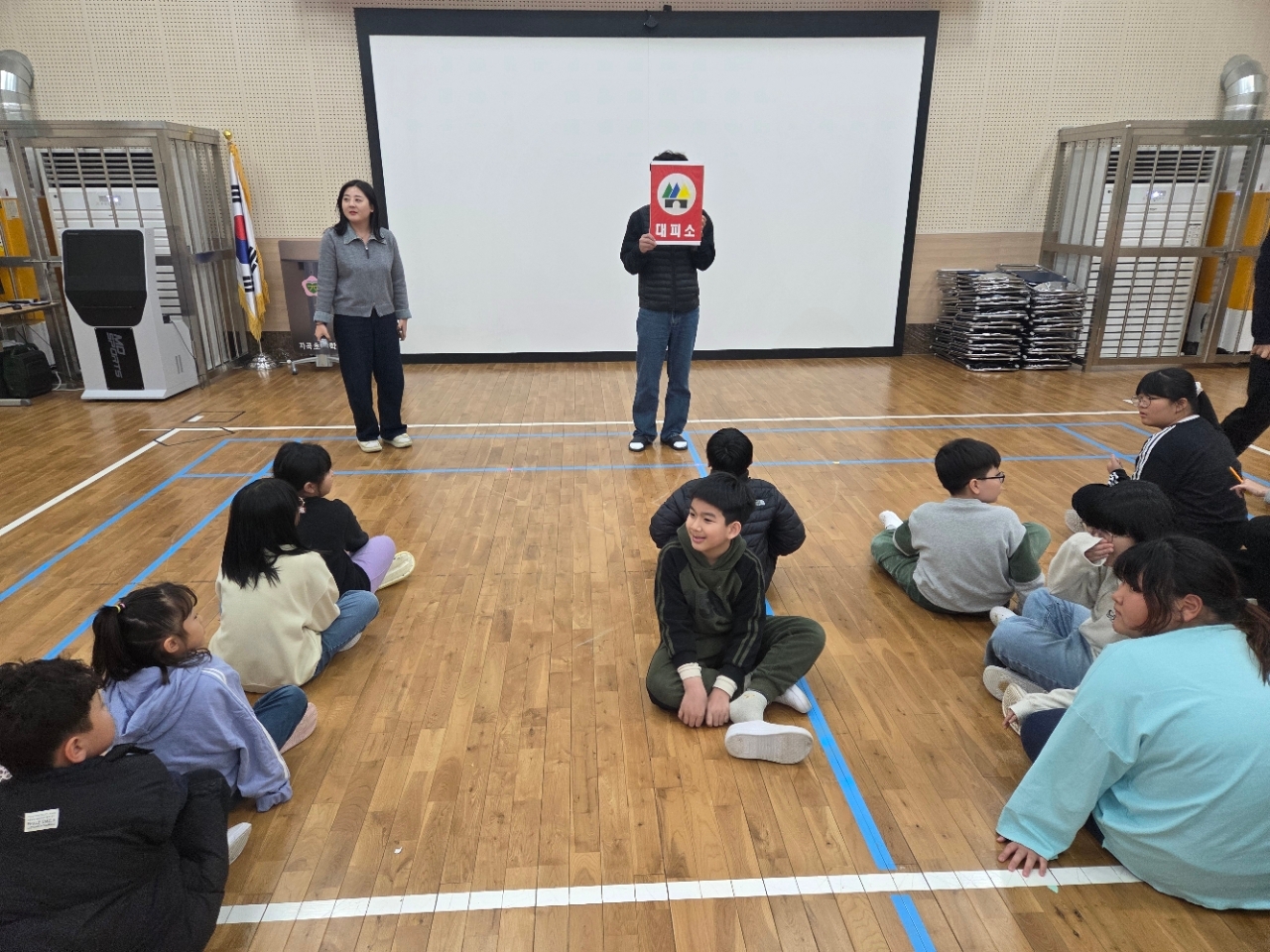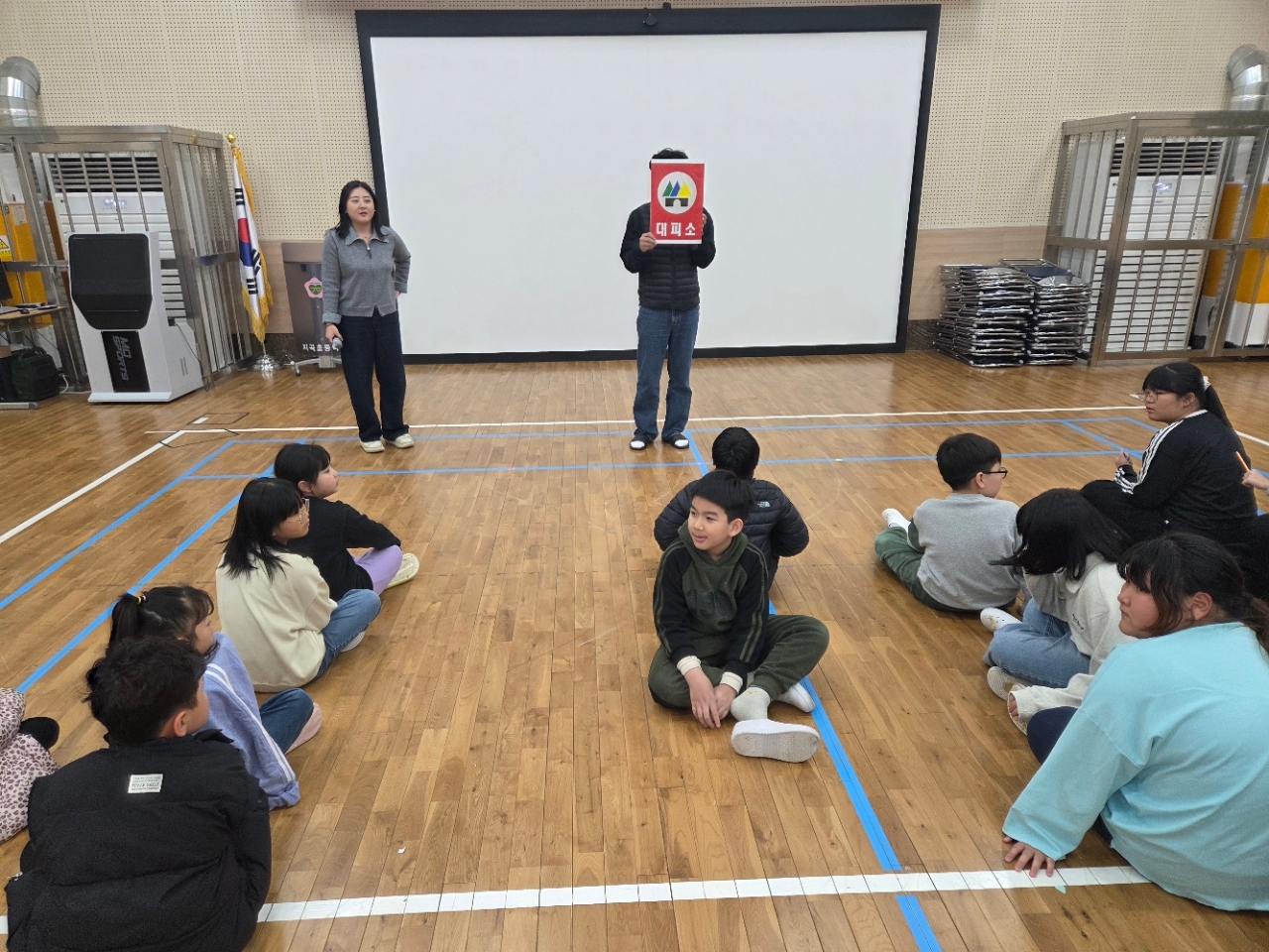 2026년 3월 18일(수) 오후에 공습대비 민방위 훈련을 실시하였습니다. 이번 훈련은 교실에서 사전에 재난상황별 대피방법(소방, 지진, 민방위)의 차이점을 학습하고 공습상황시의 대피소를 알아보았습니다. 그리고 함양군의 대피시설을 찾아보는 활동을 한후 학교 근처는 대피소가 없으므로 체육관을 지하주차장이나 지하철역, 터널 대피시설로 가정하고 대피하는 훈련을 실시하였습니다. 실제 상황에서는 운동장이나 건물안으로 대피하지 않도록 집합교육도 실시하였습니다.