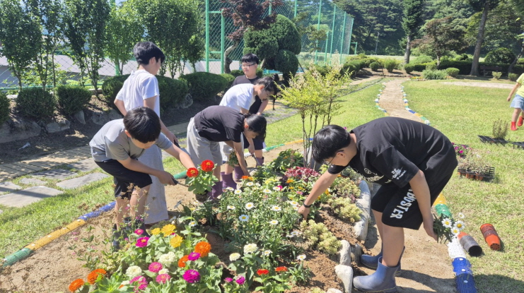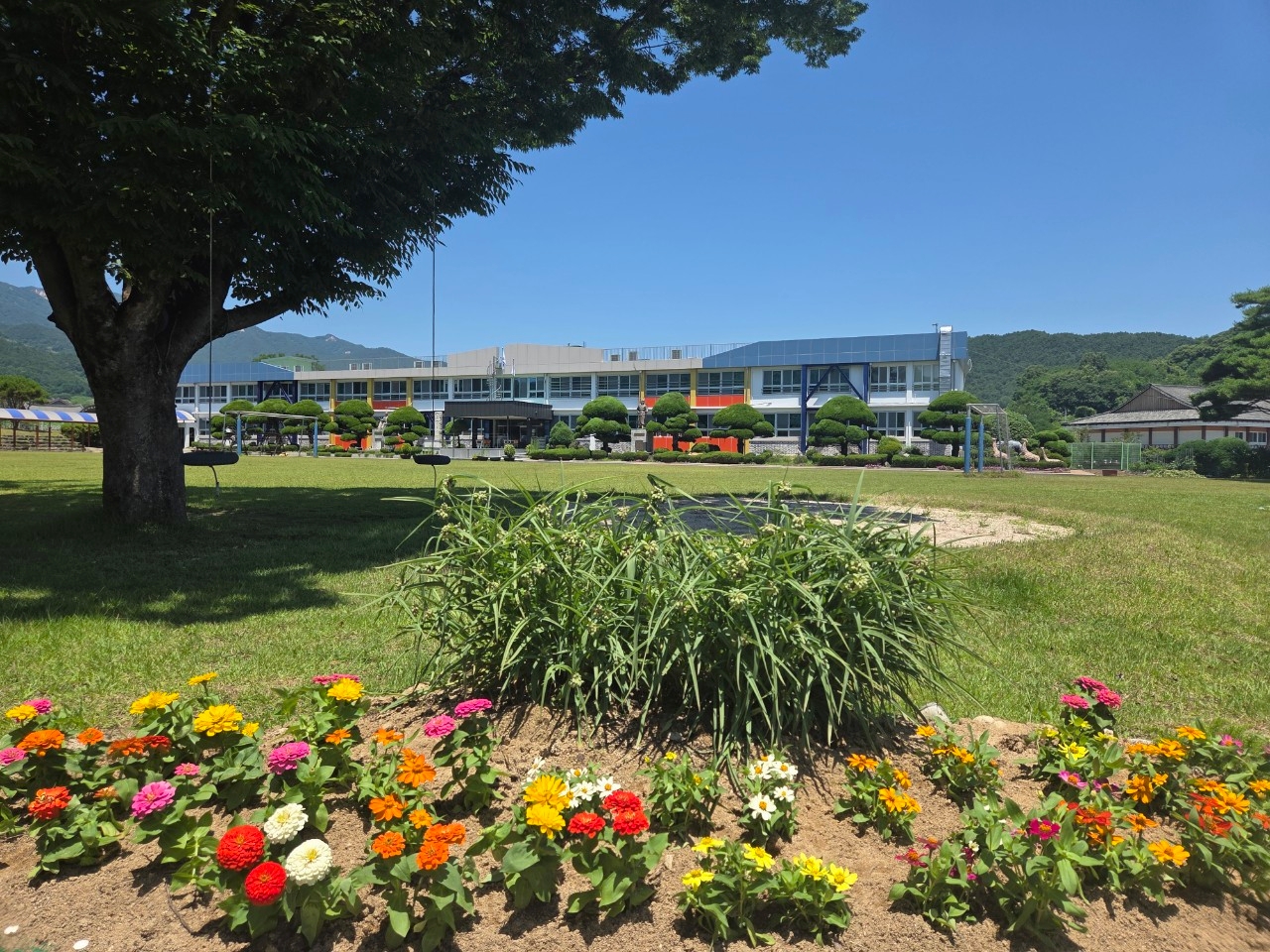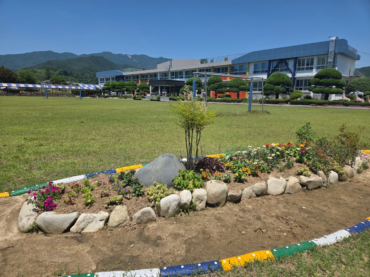 그리고 맨발걷기장 주변에 천일홍, 금잔화, 백일홍, 페튜니아, 메리골드 등 여름꽃을 학년별로 심었습니다.