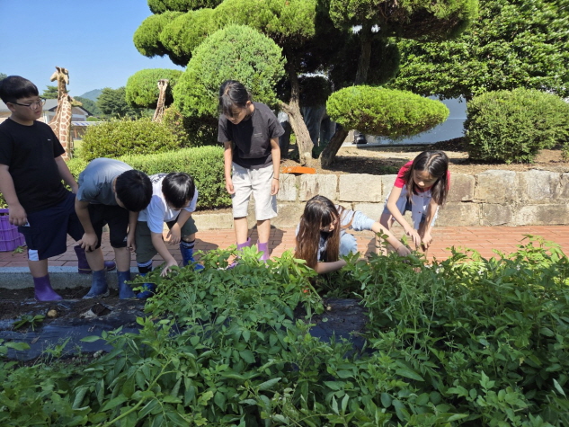 6월 23일(월) 아침시간에 지곡어린이들은 봄에 심은 감자를 약 90일만에 수확하였습니다. 정성으로 가꾸어 올해는 작년보다 더 많은 감자를 수확하였습니다.