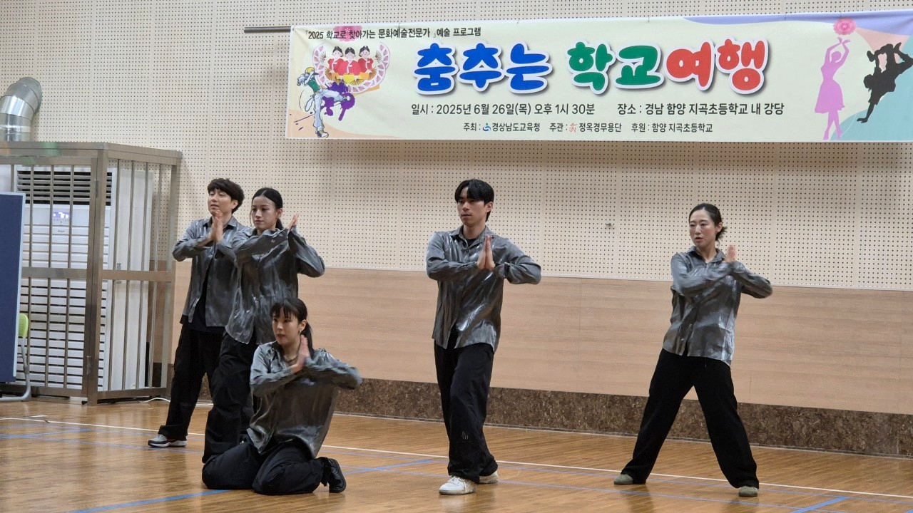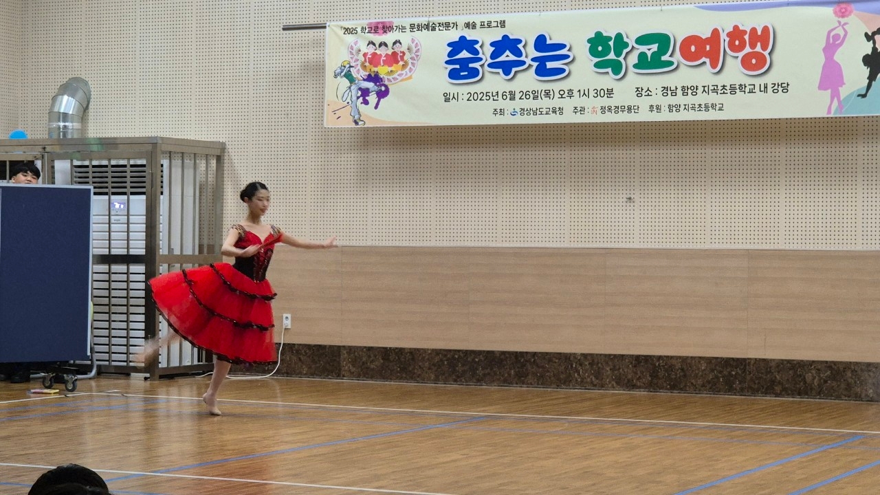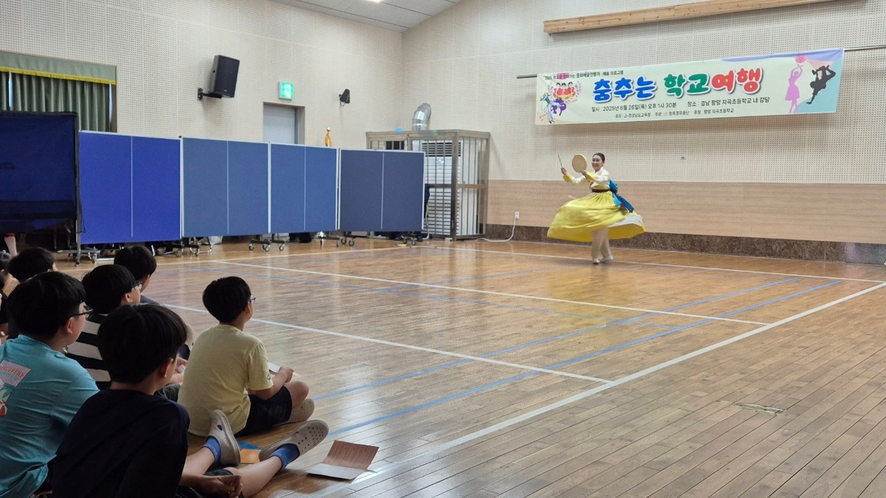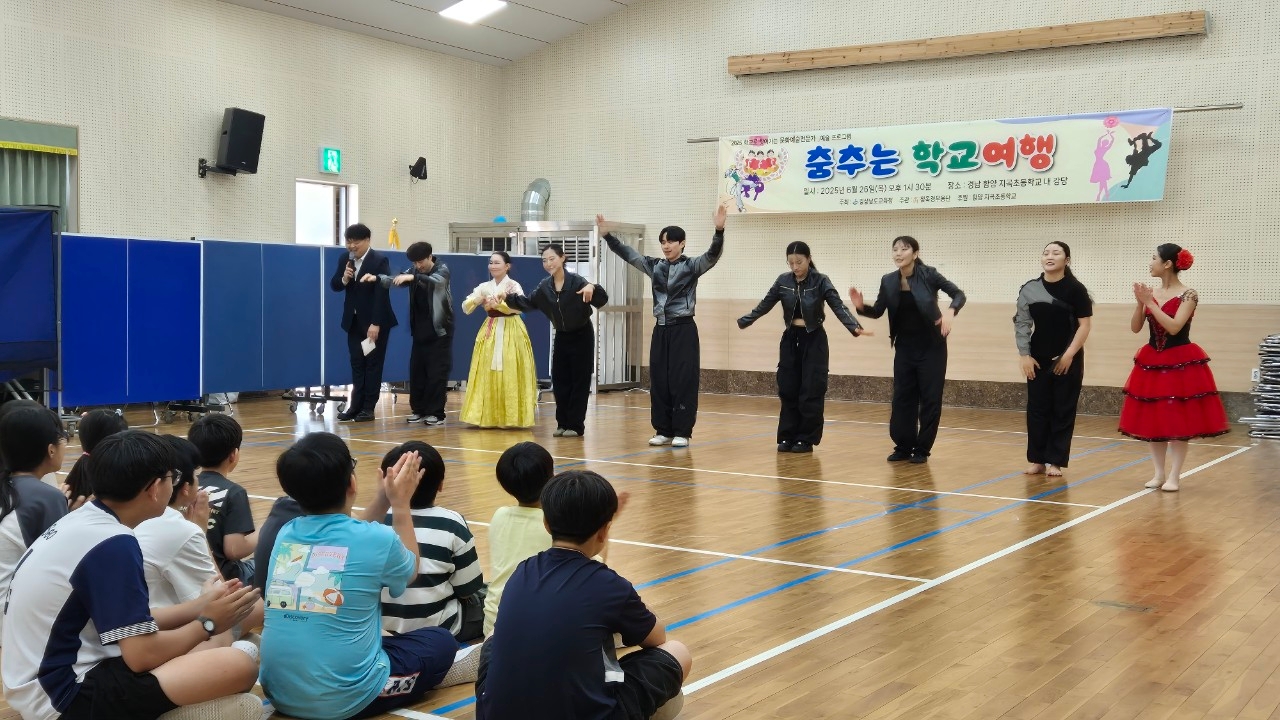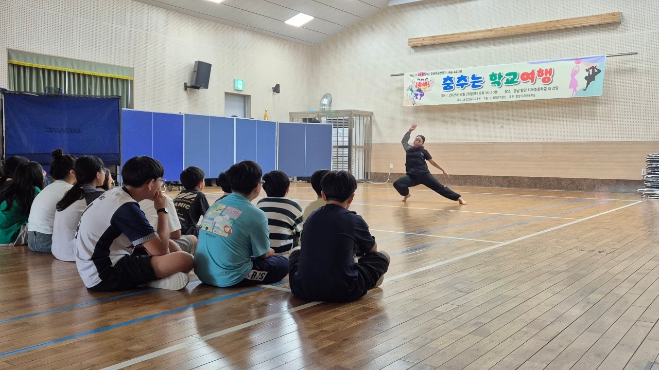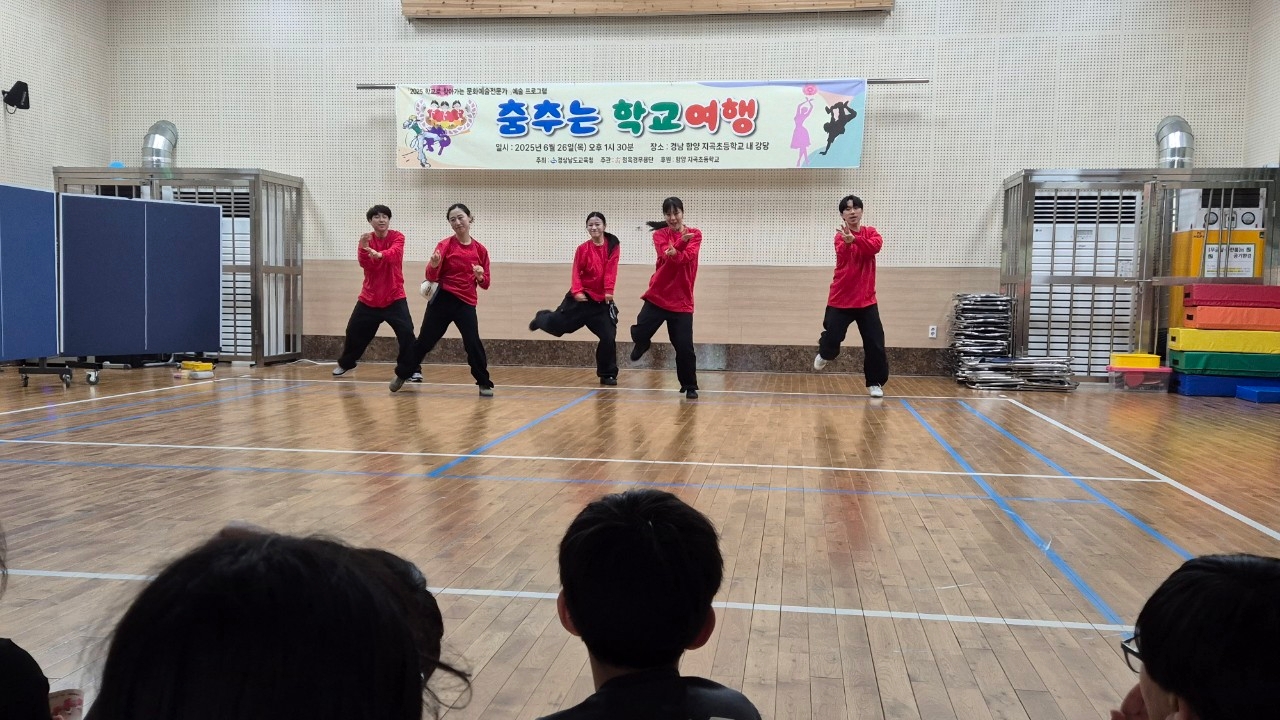 6월 26일(목) 5-6교시 어울터에서 학교로 찾아가는 문화예술 전문가 초청 공연이 있었습니다. 정옥경 무용단을 초청하여 다양한 무용 장르 공연감상과 무용을 배우는 시간을 가졌습니다.