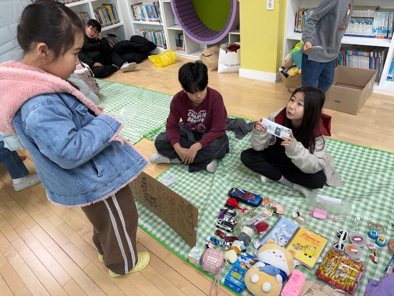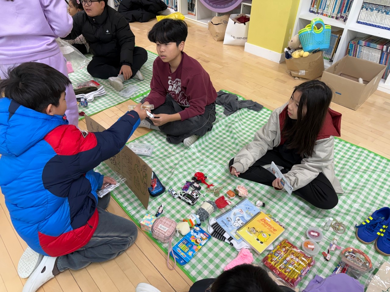 12월 19일(금) 배려와 나눔을 실천하고 학생들의 자기주도적 학습력 신장을 위해 어린이회 주관 알뜰바자회를 실시하였습니다. 알뜰시장과 뽑기게임, 환경퀴즈, 신발던지기 게임에도 참가하고 바자회 쿠폰을 이용하여 교장선생님이 만들어주시는 와플도 사 먹었습니다.